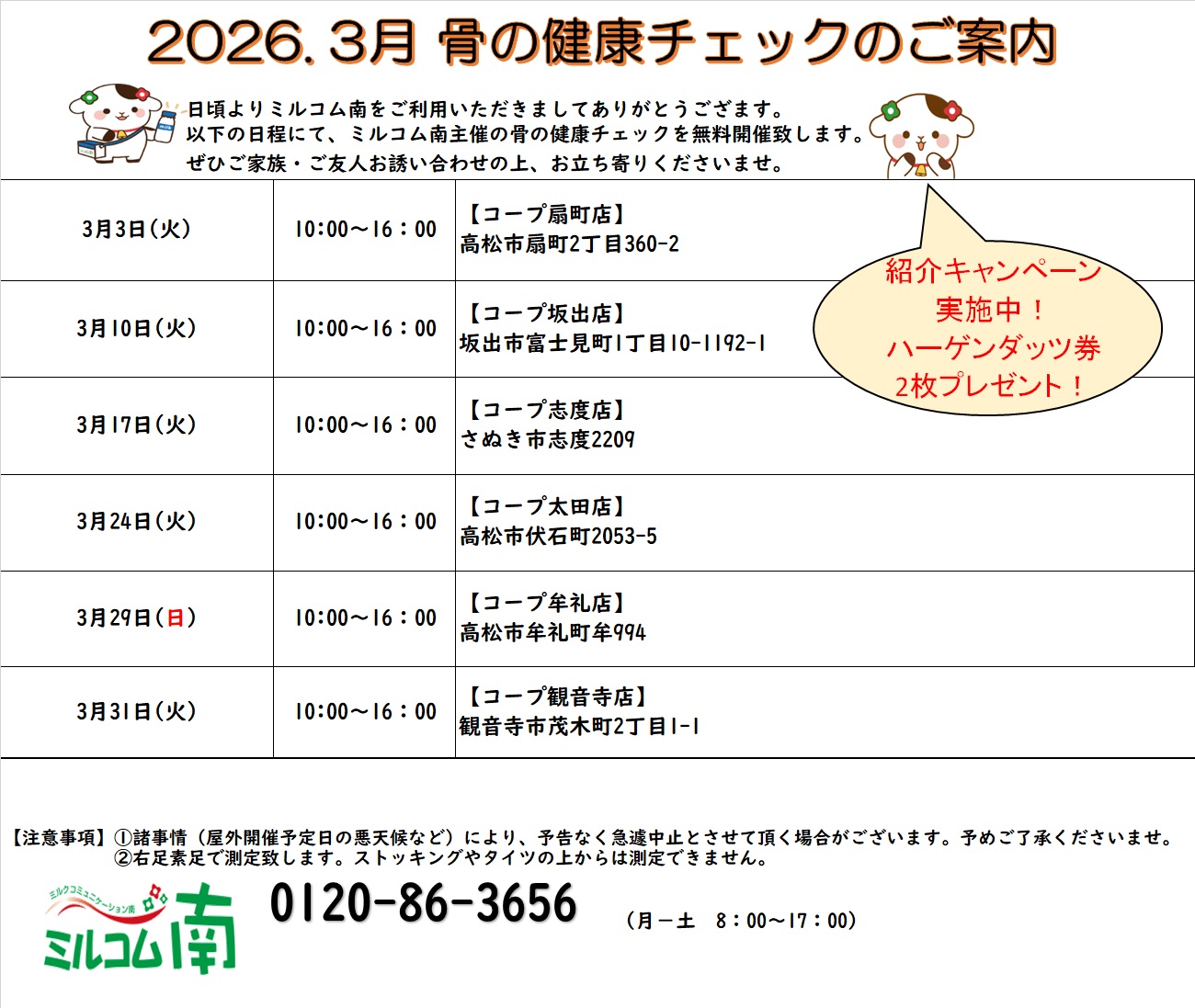 【香川県】2026年2月 無料!骨の健康チェックイベント